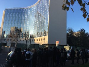 devant l’immeuble Niemeyer